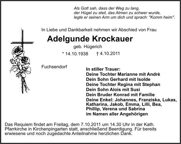 Die Beisetzung findet am Freitag, 07.10.2011 um 14:30 Uhr auf dem Friedhof in Kirchenpingarten statt.