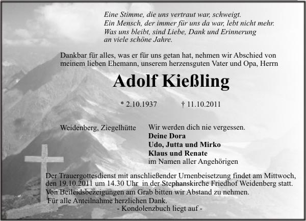 Der Trauergottesdienst mit anschließender Urnenbeisetzung findet am Mittwoch, den 19.10.2011 um 14.30 Uhr in der Stephanskirche Friedhof Weidenberg statt.