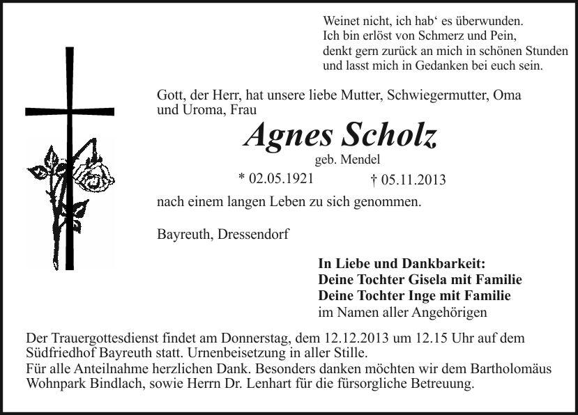 Der Trauergottesdienst findet am Donnerstag, dem 12.12.2013 um 12.15 Uhr auf dem Südfriedhof Bayreuth statt. Urnenbeisetzung in aller Stille.