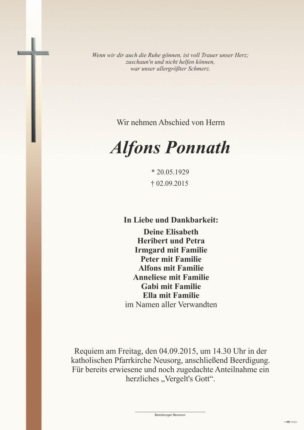 Das Requiem findet am Freitag, den 04. September 2015, um 14.30 Uhr in der katholischen Pfarrkirche Neusorg statt, anschließend Beerdigung.