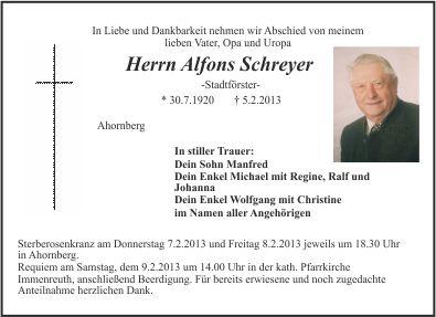 Requiem am Samstag, dem 9.2.2013 um 14.00 Uhr in der kath. Pfarrkirche Immenreuth, anschließend Beerdigung. Für bereits erwiesene und noch zugedachte Anteilnahme herzlichen Dank.