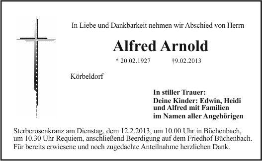 Sterberosenkranz am Dienstag, dem 12.2.2013, um 10.00 Uhr in Büchenbach, um 10.30 Uhr Requiem, anschließend Beerdigung auf dem Friedhof Büchenbach.