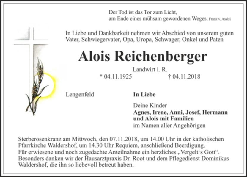 Sterberosenkranz am Mittwoch, den 07.11.2018, um 14.00 Uhr in der katholischen Pfarrkirche Waldershof, um 14.30 Uhr Requiem, anschließend Beerdigung.