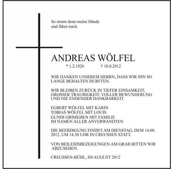 DIE BEERDIGUNG FINDET AM DIENSTAG, DEM 14.08.