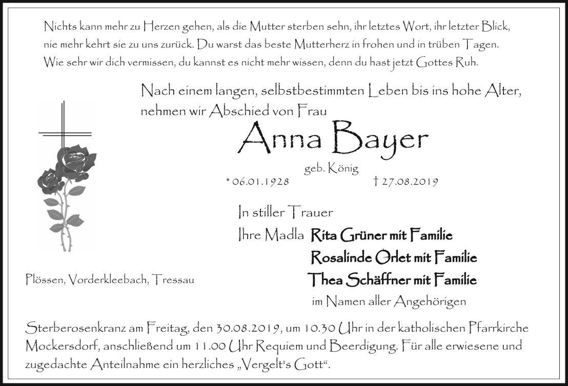 10.30 Uhr in der Pfarrkirche Mockersdorf, anschließend um 11.00 Uhr Requiem und Beerdigung. Für alle erwiesene und zugedachte Anteilnahme ein herzliches „Vergelt‘s Gott“.