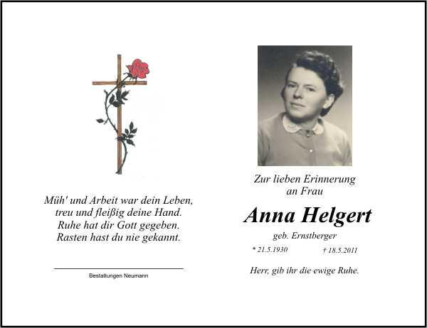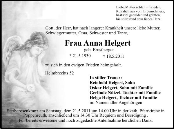 Die Beisetzung findet am Samstag, 21.05.2011 um 14:30 Uhr auf dem Friedhof in Poppenreuth statt.
