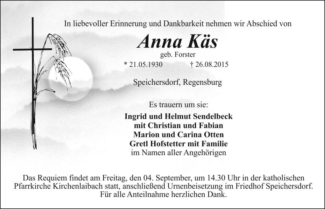 Das Requiem findet am Freitag, den 04. September, um 14.30 Uhr in der katholischen Pfarrkirche Kirchenlaibach statt, anschließend Urnenbeisetzung im Friedhof Speichersdorf. Für alle Anteilnahme herzlichen Dank.