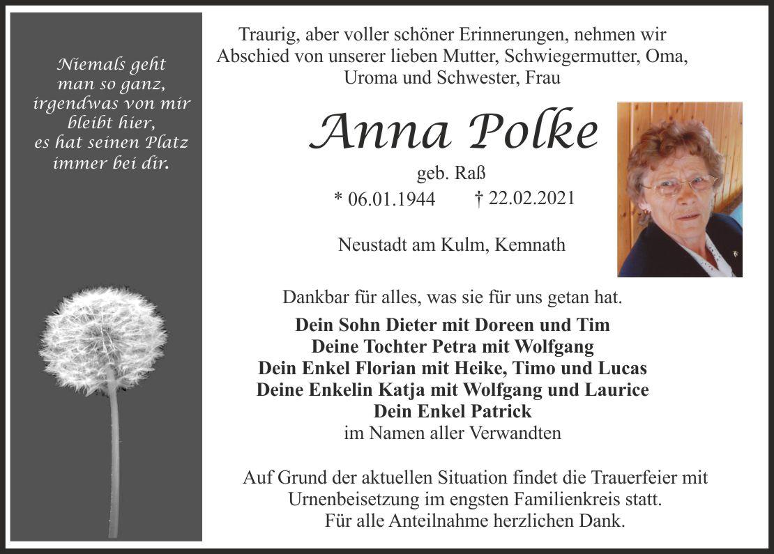 Die Beisetzung findet auf dem Friedhof in Friedhof in Neustadt am Kulm statt.