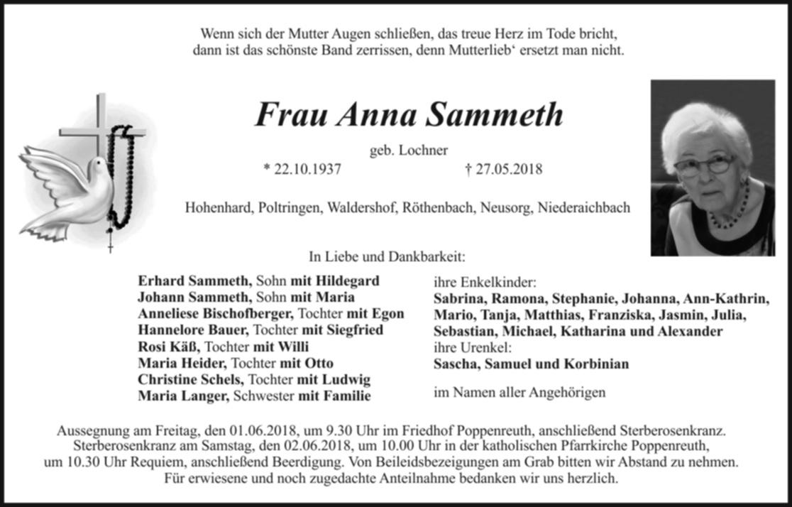 Aussegnung am Freitag, den 01.06.2018, um 9.30 Uhr im Friedhof Poppenreuth, anschließend Sterberosenkranz. Sterberosenkranz am Samstag, den 02.06.2018, um 10.00 Uhr in der katholischen Pfarrkirche Poppenreuth,