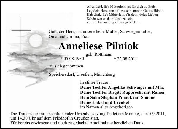 Die Beisetzung findet am Montag, 05.09.2011 um 14:30 Uhr auf dem Friedhof in Creußen statt.