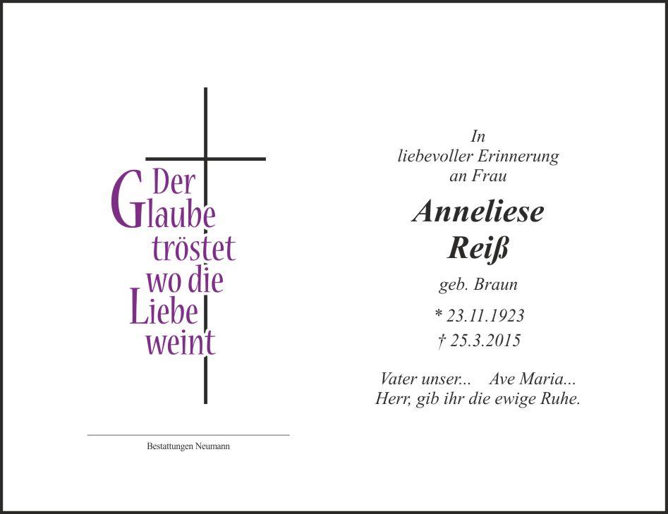Aussegnung am Donnerstag, 26.3.2015, um 17.30 Uhr im Friedhof Kirchenlaibach, anschließend Sterberosenkranz.