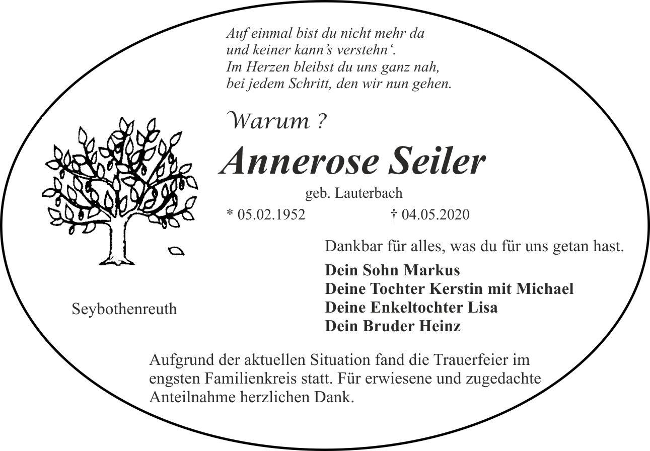Die Beisetzung findet auf dem Friedhof in Friedhof in Seybothenreuth statt.