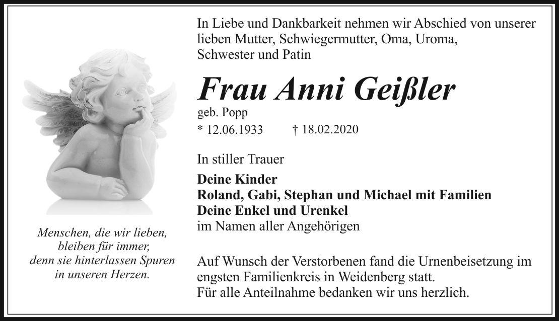 Auf Wunsch der Verstorbenen fand die Urnenbeisetzung im engsten Familienkreis in Weidenberg statt.