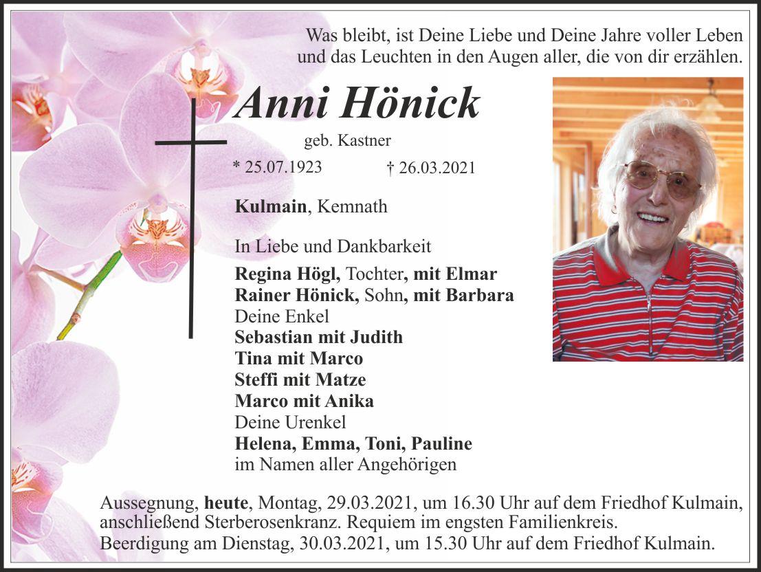 Beerdigung am Dienstag, 30.03.2021, um 15.30 Uhr auf dem Friedhof Kulmain.