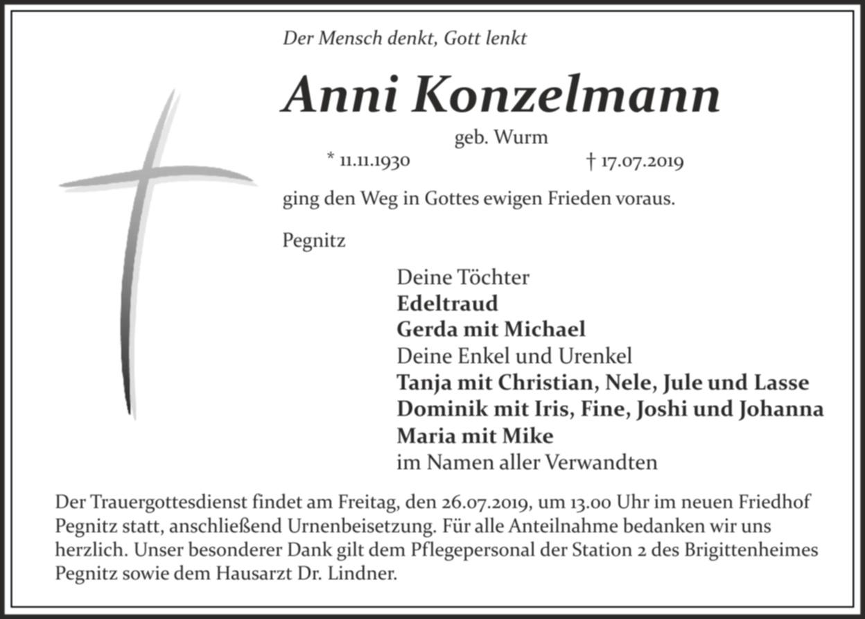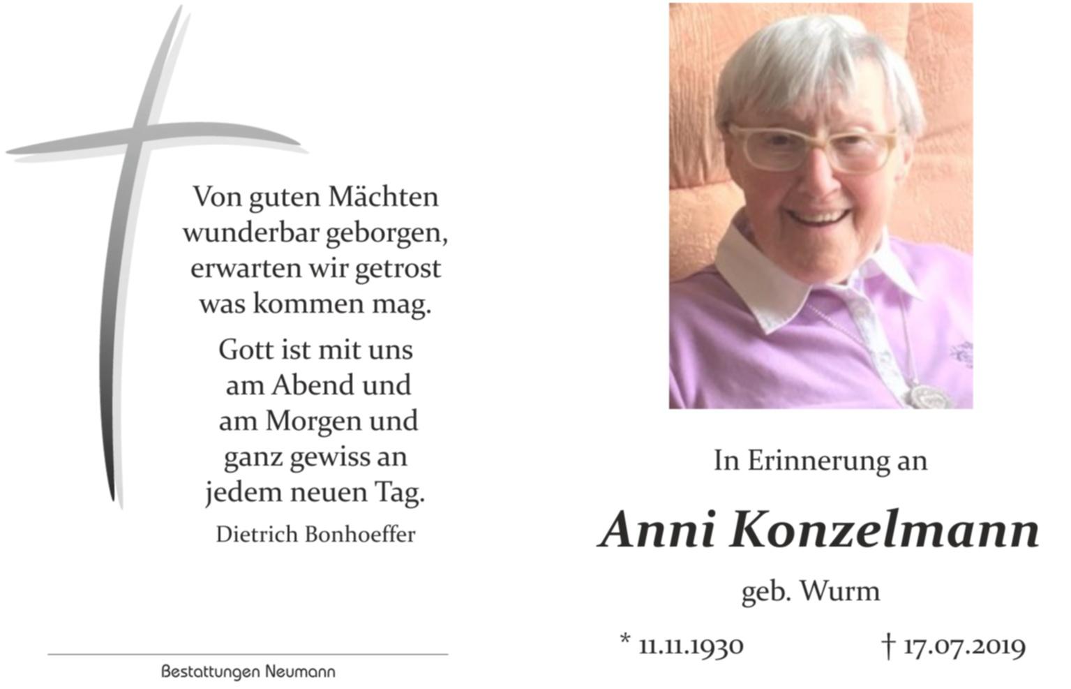 Der Trauergottesdienst findet am Freitag, den 26.07.2019, um 13.00 Uhr
