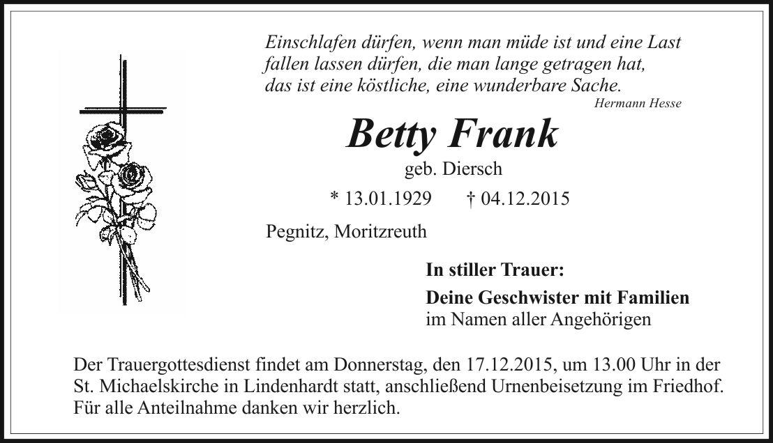 Der Trauergottesdienst findet am Donnerstag, den 17.12.2015, um 13.00 Uhr in der