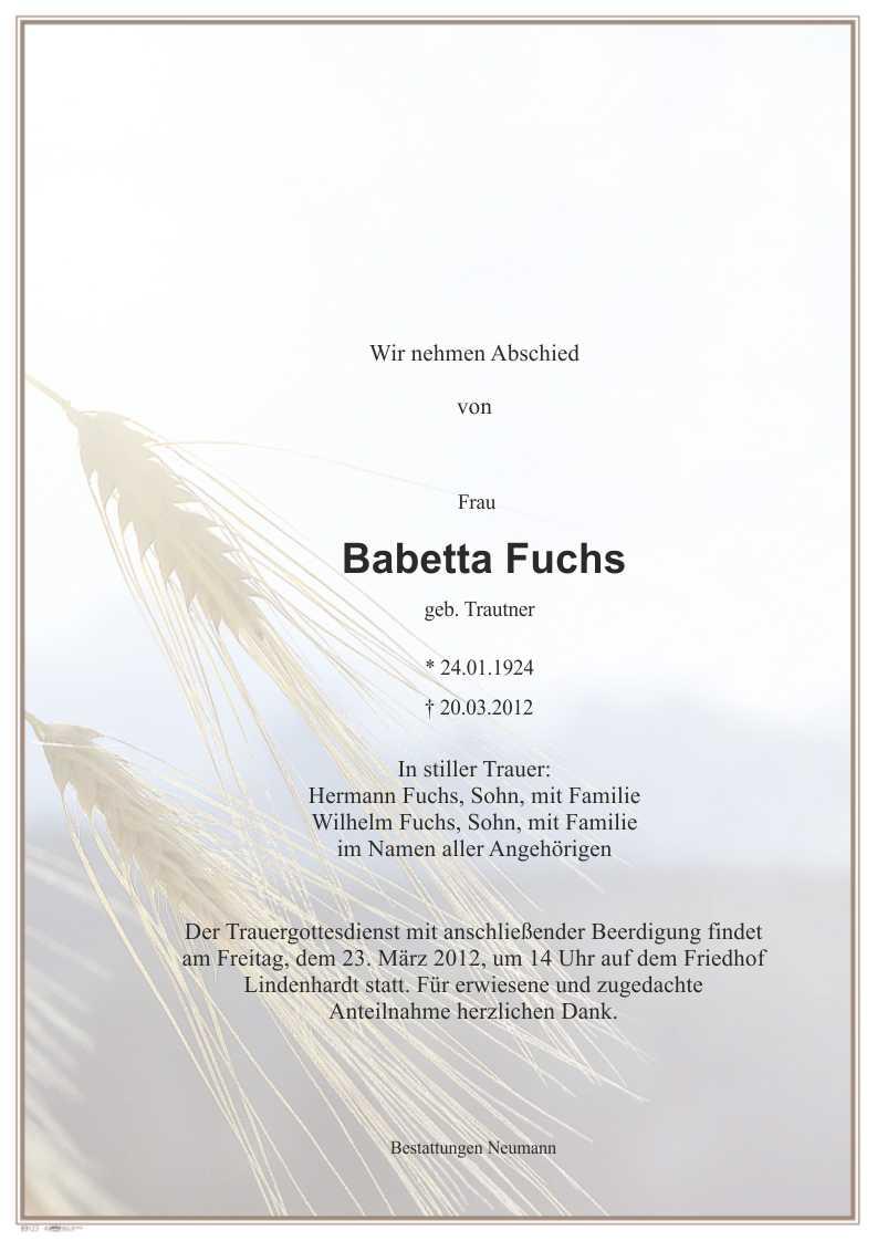 Der Trauergottesdienst mit anschließender Beerdigung findet am Freitag, dem 23.3.2012 um 14.00 Uhr in Lindenhardt statt.