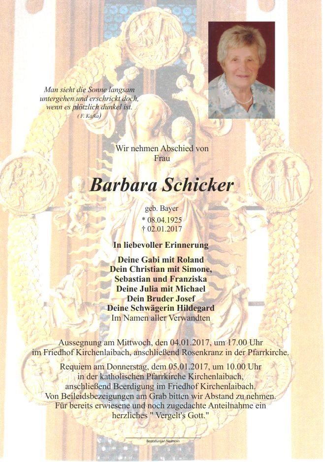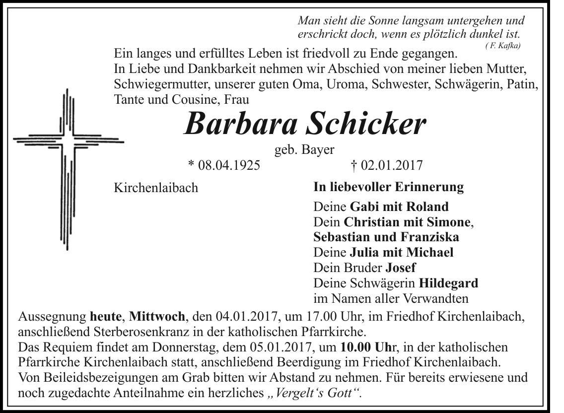 Aussegnung heute, Mittwoch, den 04.01.2017, um 17.00 Uhr, im Friedhof Kirchenlaibach, anschließend Sterberosenkranz in der katholischen Pfarrkirche.