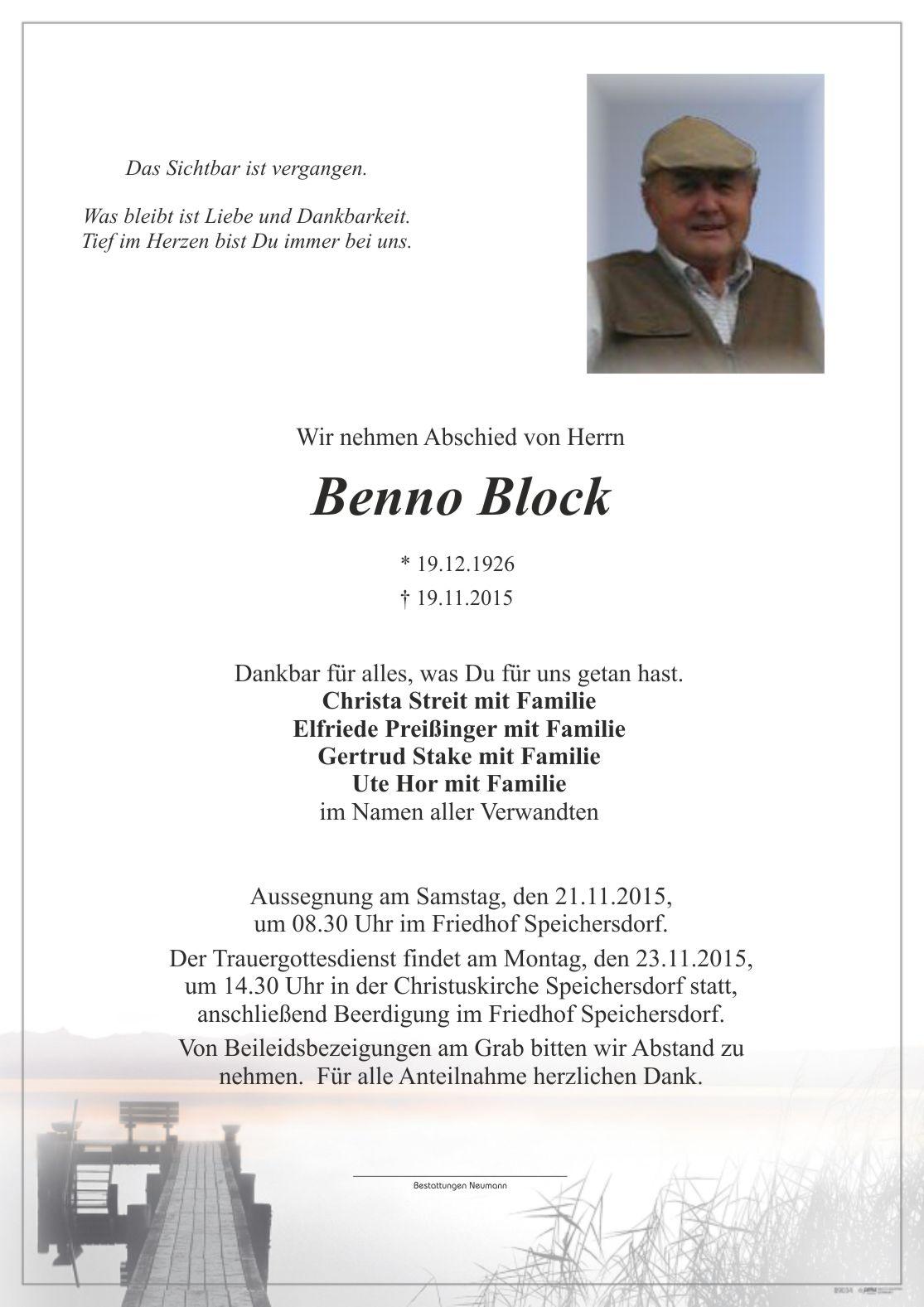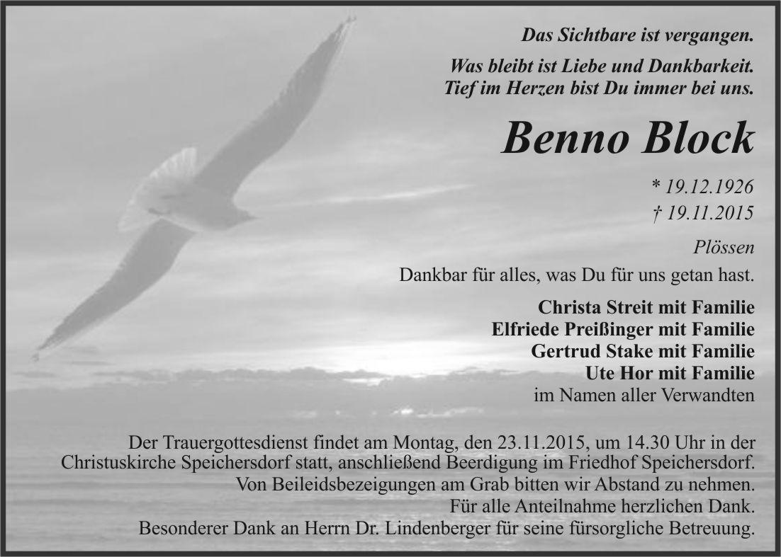 Der Trauergottesdienst findet am Montag, den 23.11.2015, um 14.30 Uhr in der Christuskirche Speichersdorf statt, anschließend Beerdigung im Friedhof Speichersdorf.