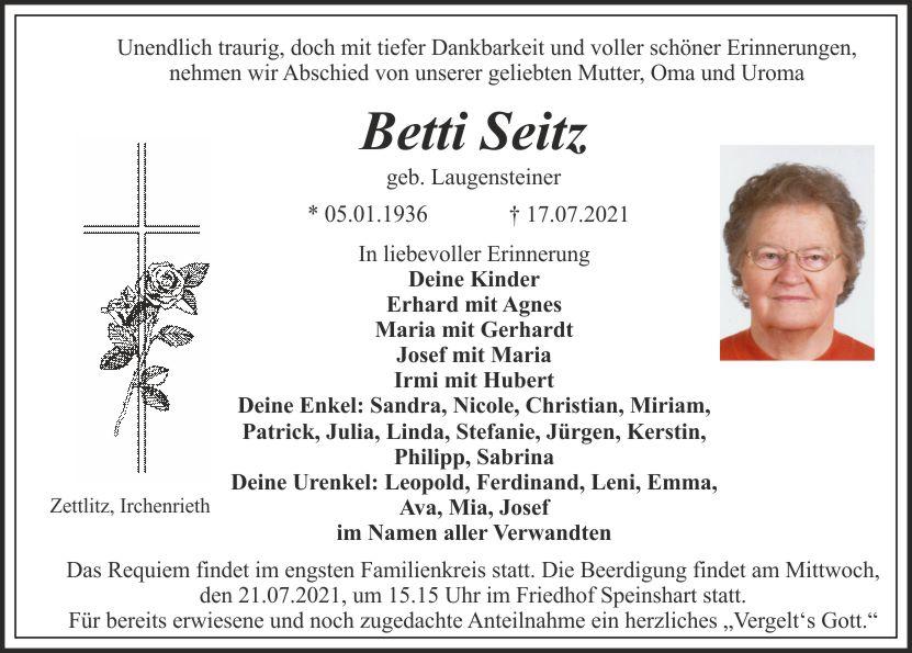 Das Requiem findet im engsten Familienkreis statt. Die Beerdigung findet am Mittwoch, den 21.07.2021, um 15.15 Uhr im Friedhof Speinshart statt.