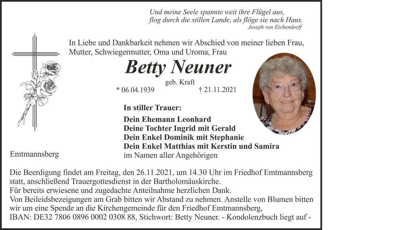 IBAN: DE32 7806 0896 0002 0308 88, Stichwort: Betty Neuner. - Kondolenzbuch liegt auf -