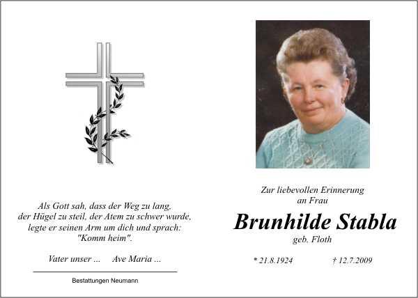 Die Beisetzung findet am Mittwoch, 15.07.2009 um 14:00 Uhr auf dem Friedhof in Burkhardsreuth statt.