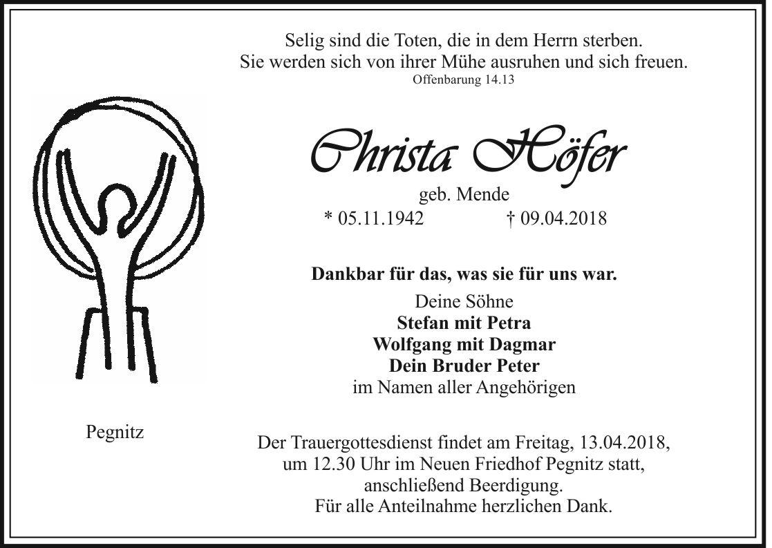 Der Trauergottesdienst findet am Freitag, 13.04.2018,
