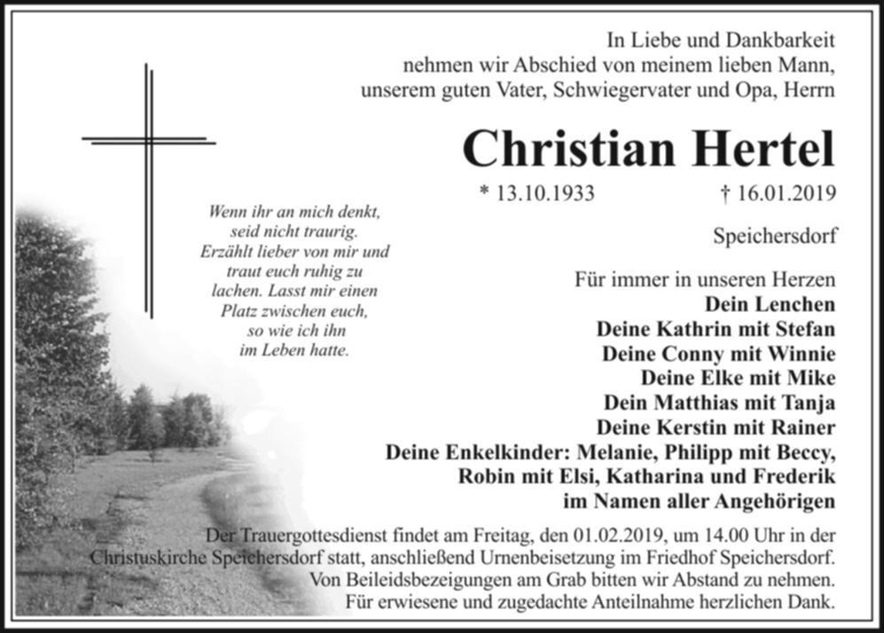Christuskirche Speichersdorf statt, anschließend Urnenbeisetzung im Friedhof Speichersdorf.