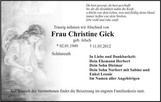 es tut uns sehr leid, dass Deine liebe Christine so früh sterben musste. Hoffentlich konnte sie friedlich einschlafen.