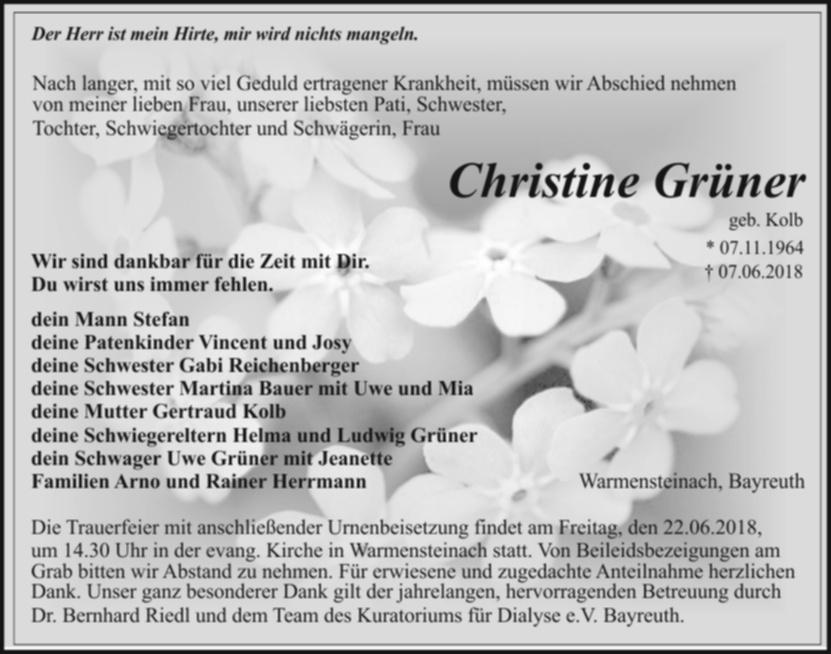um 14.30 Uhr in der evang. Kirche in Warmensteinach statt. Von Beileidsbezeigungen am Grab bitten wir Abstand zu nehmen. Für erwiesene und zugedachte Anteilnahme herzlichen Dank. Unser ganz besonderer Dank gilt der jahrelangen, hervorragenden Betreuung durch