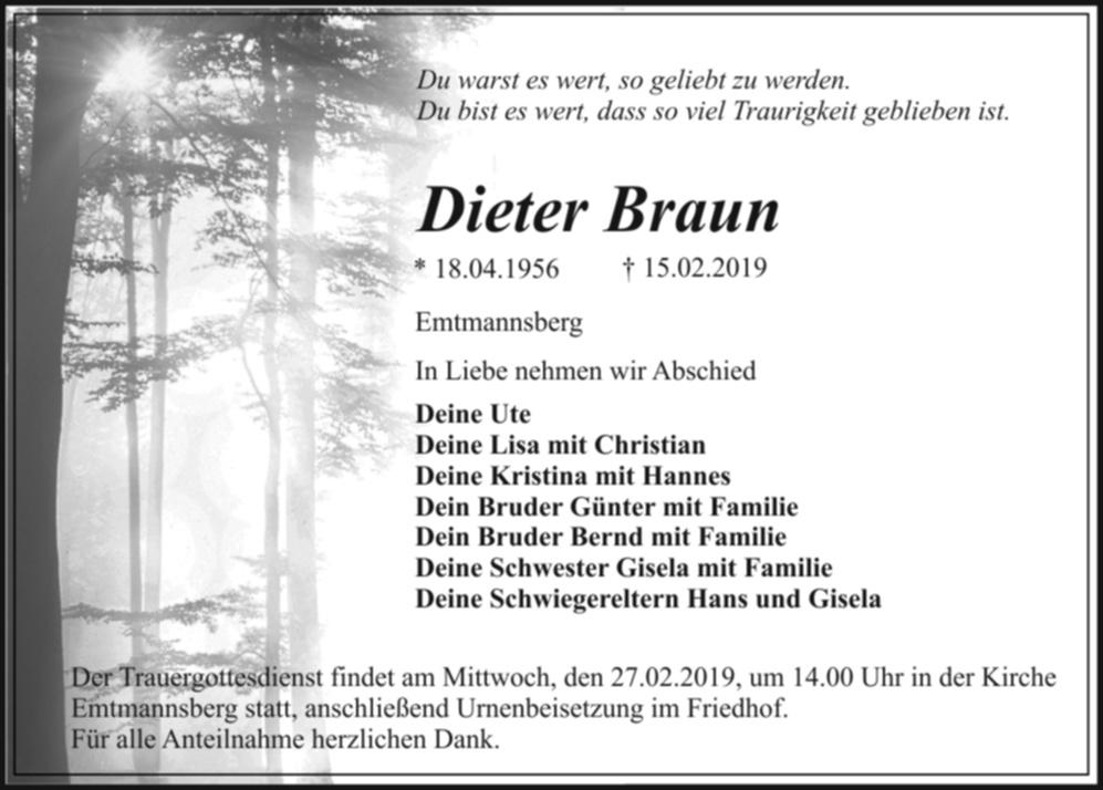 Trauergottesdienst am Mittwoch, den 27.02.2019, um 14.00 Uhr in der Kirche Emtmannsberg, anschließend Urnenbeisetzung im Friedhof. Für alle Anteilnahme herzlichen Dank.