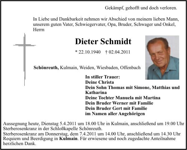 Die Beisetzung findet am Donnerstag, 07.04.2011 um 14:30 Uhr auf dem Friedhof in Kulmain statt.
