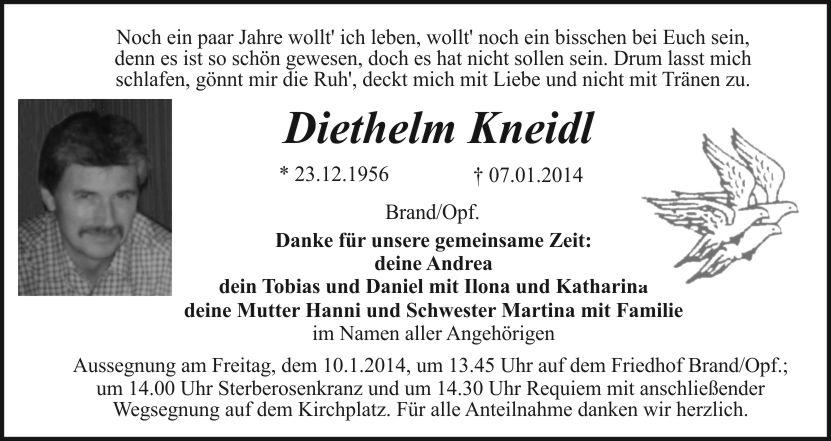 Aussegnung am Freitag, dem 10.1.2014, um 13.45 Uhr auf dem Friedhof Brand/Opf.;