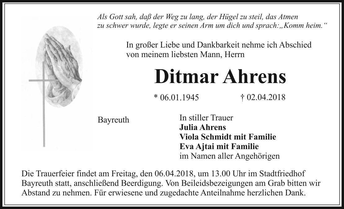Bayreuth statt, anschließend Beerdigung. Von Beileidsbezeigungen am Grab bitten wir