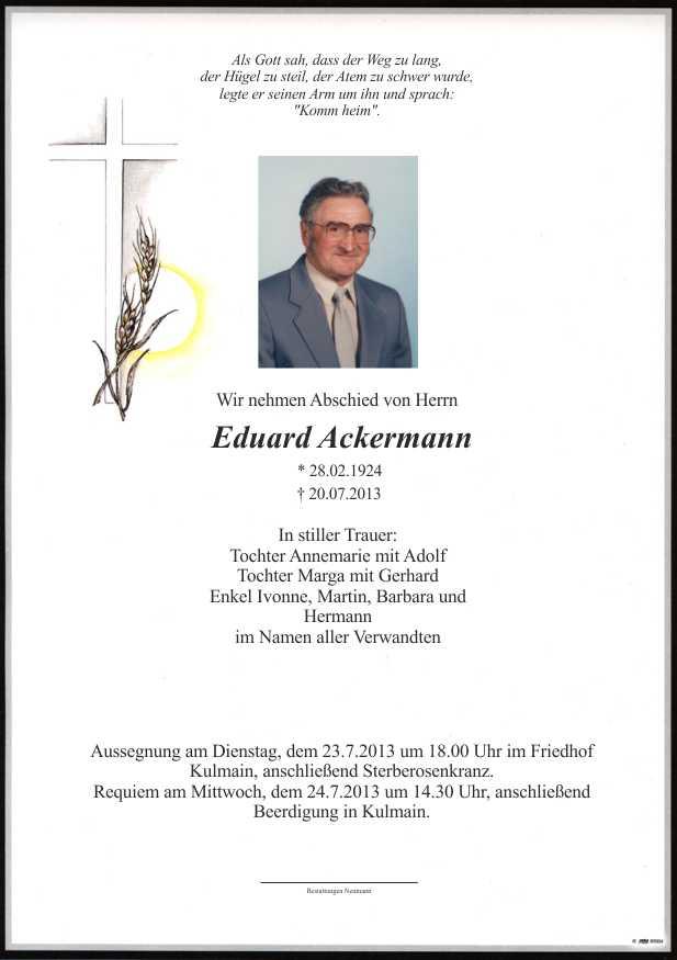 Requiem am Mittwoch, dem 24.7.2013 um 14.30 Uhr, anschließend Beerdigung in Kulmain.