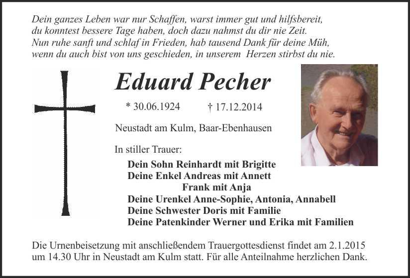 um 14.30 Uhr in Neustadt am Kulm statt. Für alle Anteilnahme herzlichen Dank.