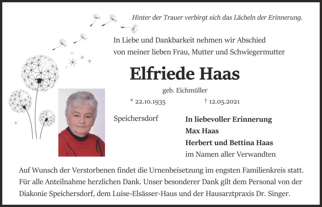 Auf Wunsch der Verstorbenen findet die Urnenbeisetzung im engsten Familienkreis statt. Für alle Anteilnahme herzlichen Dank. Unser besonderer Dank gilt dem Personal von der Diakonie Speichersdorf, dem Luise-Elsässer-Haus und der Hausarztpraxis Dr. Singer.