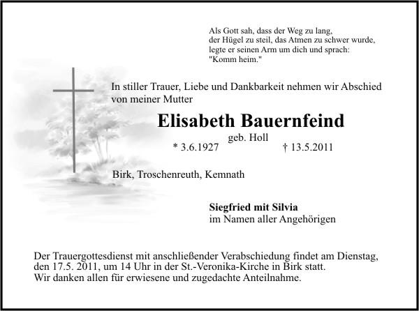 Die Beisetzung findet am Dienstag, 17.05.2011 um 14:00 Uhr auf dem Friedhof in Birk statt.