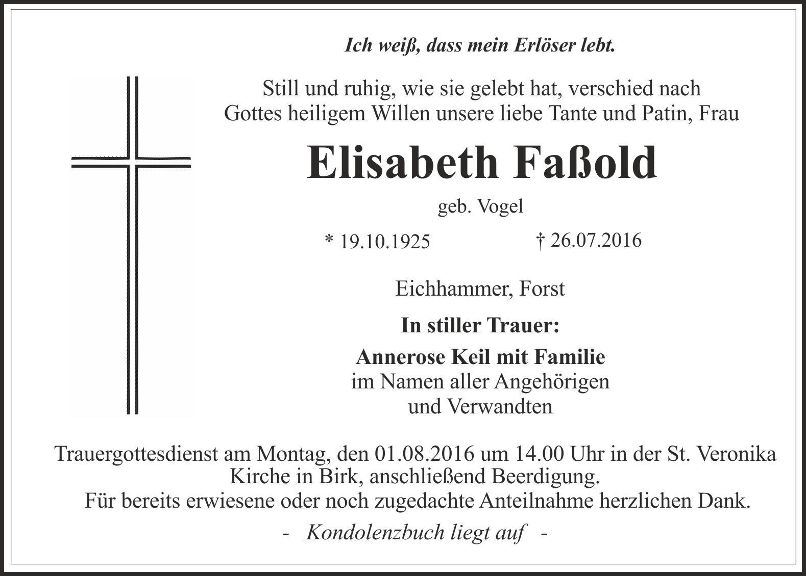 Trauergottesdienst am Montag, den 01.08.2016 um 14.00 Uhr in der St. Veronika Kirche in Birk, anschließend Beerdigung.