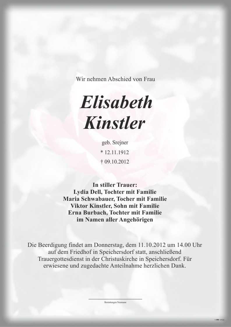 Die Beerdigung findet am Donnerstag, dem 11.10.2012 um 14.00 Uhr auf dem Friedhof in Speichersdorf statt, anschließend Trauergottesdienst in der Christuskirche in Speichersdorf. Für erwiesene und zugedachte Anteilnahme herzlichen Dank.