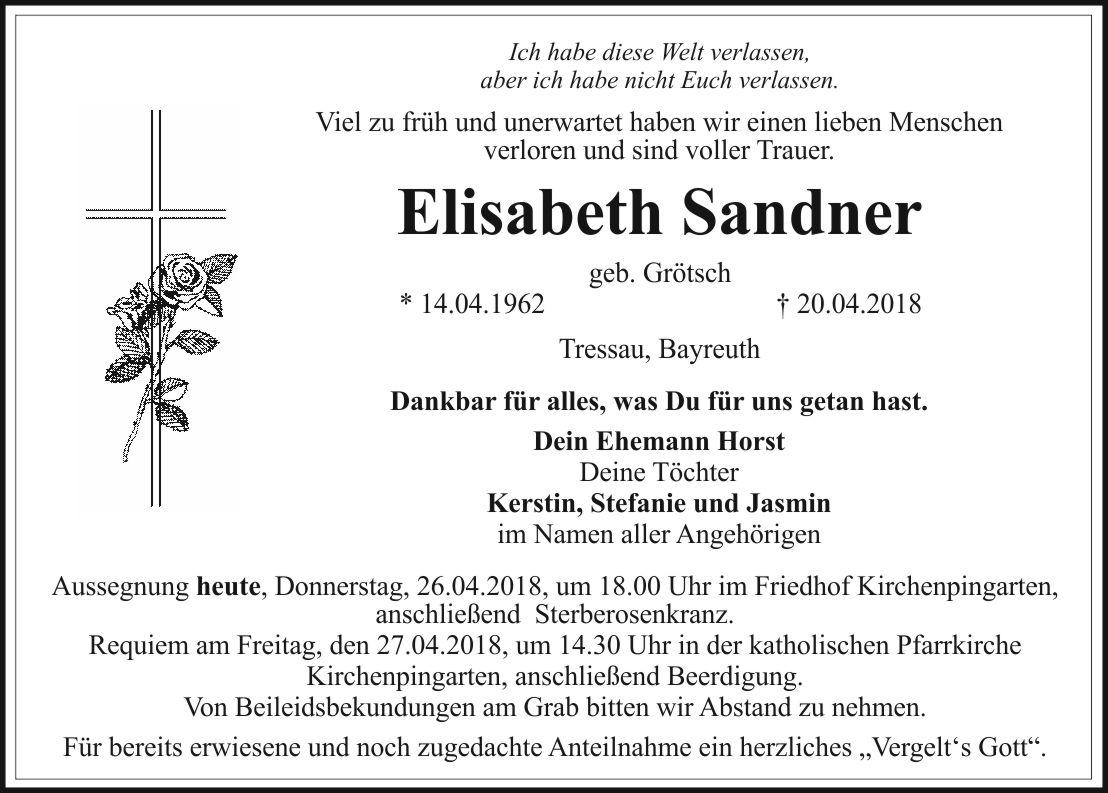Aussegnung am Donnerstag, 26.04.2018, um 18.00 Uhr im Friedhof Kirchenpingarten, anschließend Sterberosenkranz.