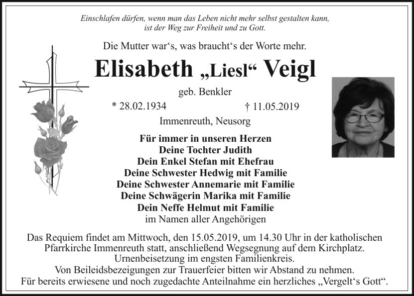 Das Requiem findet am Mittwoch, den 15.05.2019, um 14.30 Uhr in der katholischen Pfarrkirche Immenreuth statt, anschließend Wegsegnung auf dem Kirchplatz. Urnenbeisetzung im engsten Familienkreis.