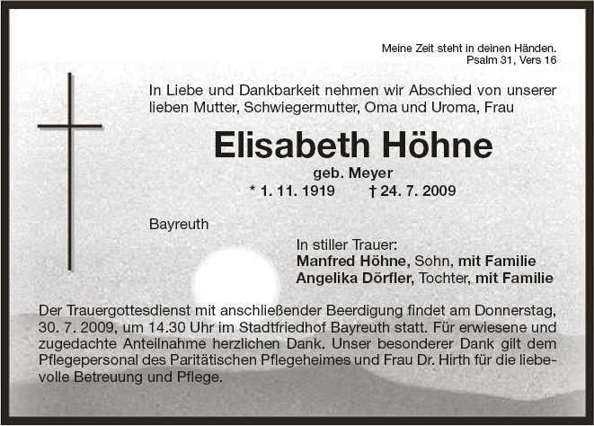 Der Trauergottesdienst mit anschließender Beerdigung findet am Donnerstag, 30.7.2009 um 14.30 Uhr auf dem Stadtfriedhof Bayreuth statt.