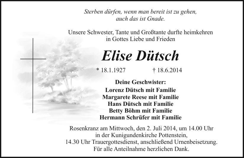 14.30 Uhr Trauergottesdienst, anschließend Urnenbeisetzung.