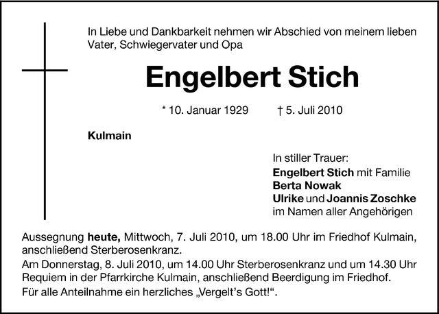 Die Beisetzung findet am Donnerstag, 08.07.2010 um 14:30 Uhr auf dem Friedhof in Kulmain statt.