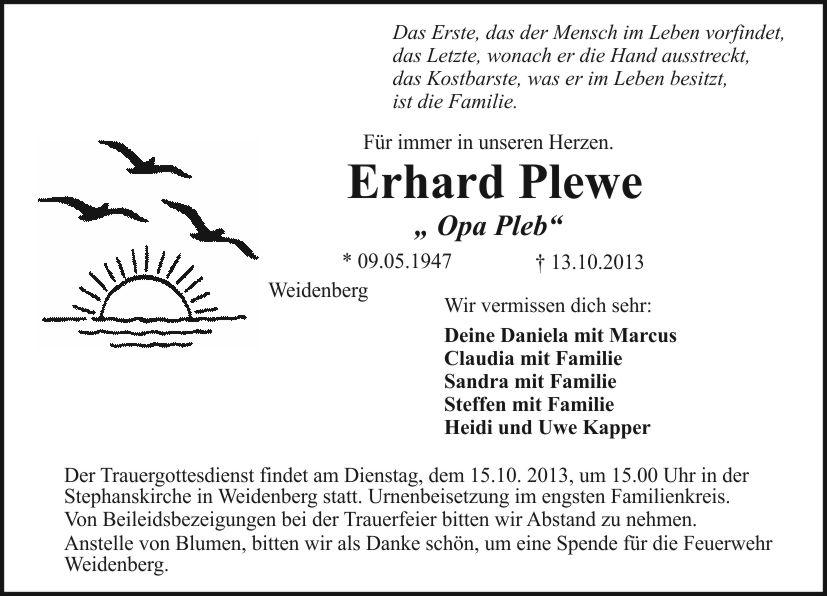 Der Trauergottesdienst findet am Dienstag, dem 15.10. 2013, um 15.00 Uhr in der Stephanskirche in Weidenberg statt. Urnenbeisetzung im engsten Familienkreis.