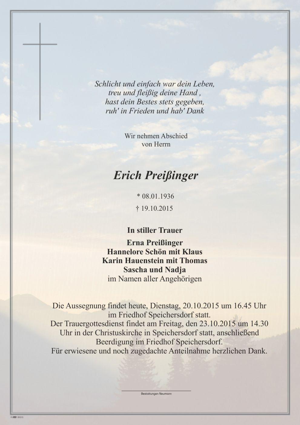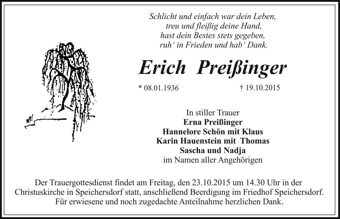 Christuskirche in Speichersdorf statt, anschließend Beerdigung im Friedhof Speichersdorf.