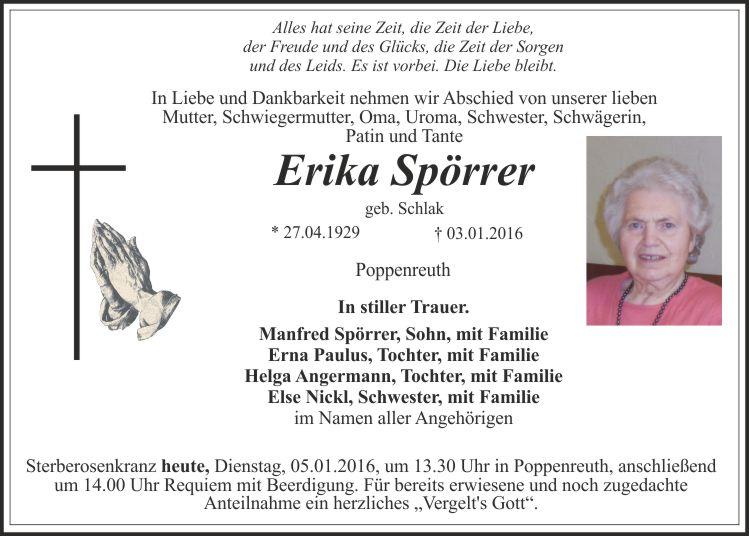 Sterberosenkranz heute, Dienstag, 05.01.2016, um 13.30 Uhr in Poppenreuth, anschließend um 14.00 Uhr Requiem mit Beerdigung. Für bereits erwiesene und noch zugedachte Anteilnahme ein herzliches „Vergelt's Gott“.