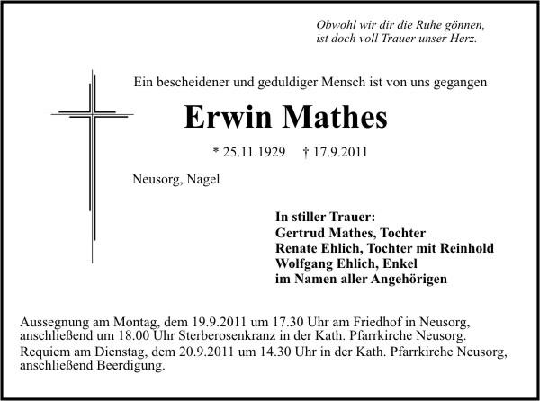 Die Beisetzung findet am Dienstag, 20.09.2011 um 14:30 Uhr auf dem Friedhof in Neusorg statt.
