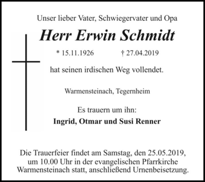 um 10.00 Uhr in der evangelischen Pfarrkirche Warmensteinach statt, anschließend Urnenbeisetzung.